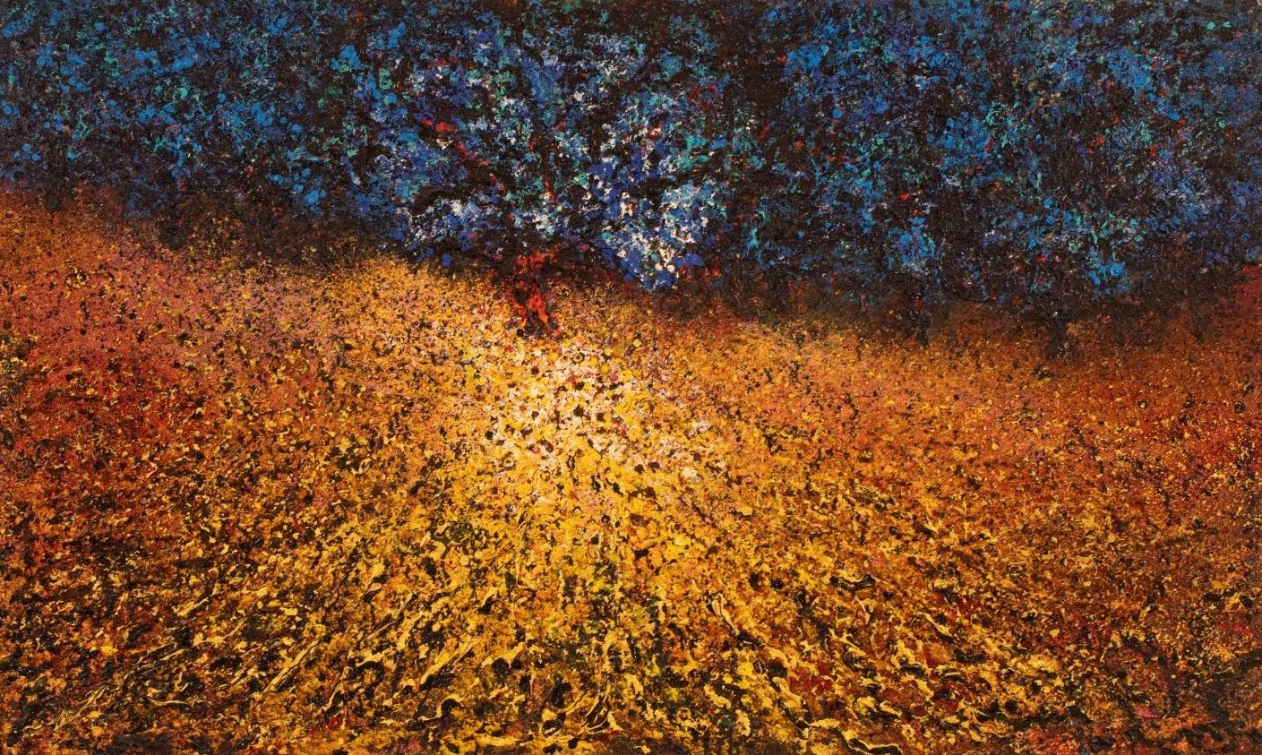 Only a practiced hand can bring balance to abstraction at this depth. Built through layered textures, earthen browns, and muted golds, this work unfolds across a 24 × 48 inch canvas, evoking a terrain shaped by time and movement. Fleeting highlights surface from within the darkness, allowing the composition to remain open, immersive, and quietly powerful.